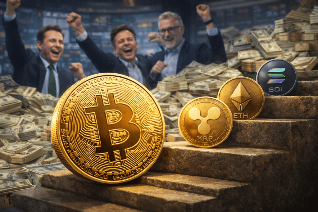 Solana rose roughly 3.57%, while Dogecoin and Cardano climbed about 7.66% and 7.47%, respectively, benefiting from the broader recovery in crypto markets.